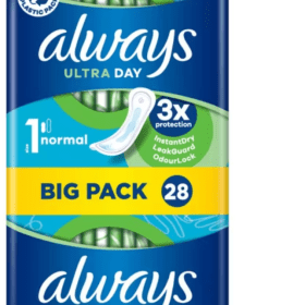 Don’t settle for less than 3x protection with ALWAYS Ultra Day Normal (Size 1) sanitary towels. Always pads absorb in seconds thanks to their InstantDry technology, and they prevent leaks & odours thanks to their LeakGuard and OdourLock technologies. For extra protection at night, try Always Ultra Size 4. Always pads are dermatologically approved by the Skin Health Alliance